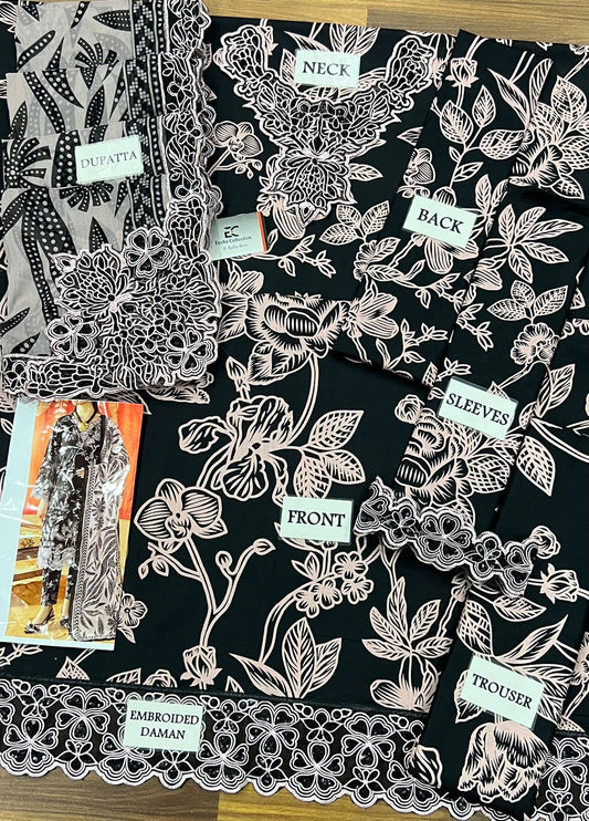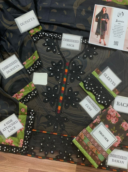 Jazmin 9mm Sequence Black Premium Pure Lawn With Voiel Emb Duppata 26