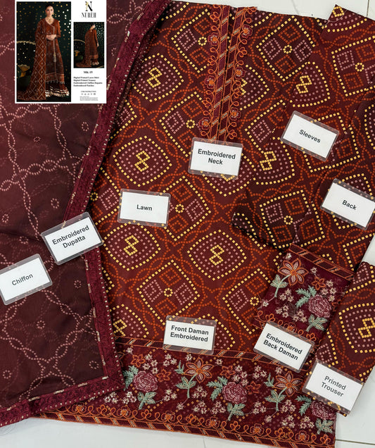 Nureh Mk-19 Chunri Premium Pure Lawn & Party Wear Dress 2026