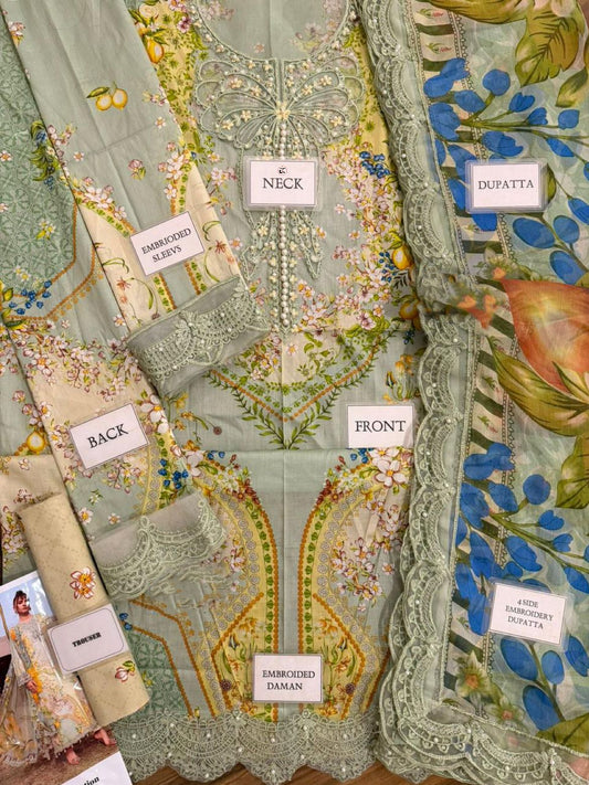 Mushq Wz 01 Most Beautiful Design Premium Pure Lawn EmbCross Stitched With Monar Digital Emb Cutwork Duppata 2026