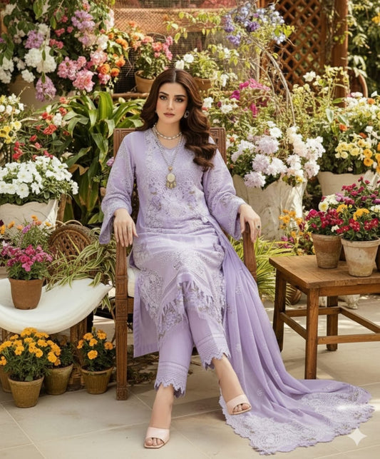 Elaaf Purple Most Demanding 100% Cotton With Organza Emb Duppata 2026