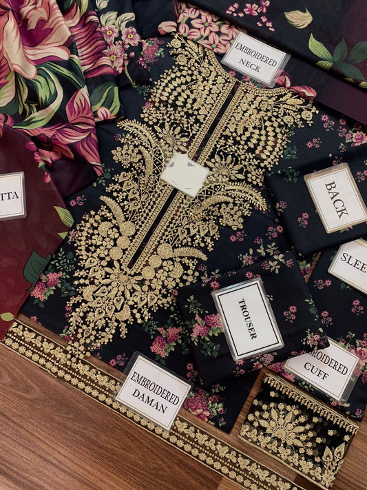 Sobia Nazir Wz-Sn-12 Black Beauty 100% Soft Cotton WIth Organza Duppata 2025
