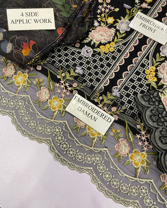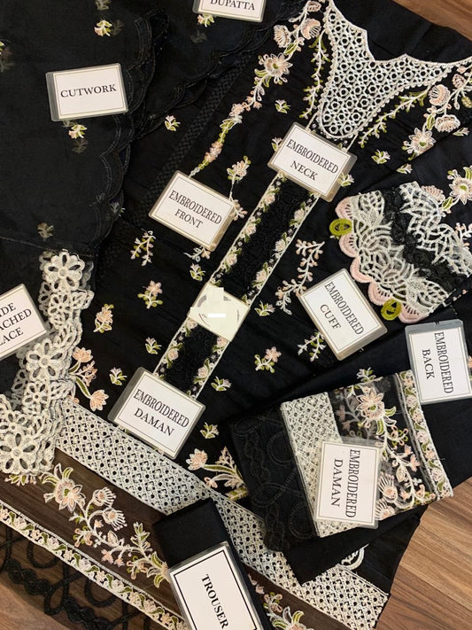 Jazmin 9mm Sequence Black Premium Pure Lawn With Voiel Emb Duppata 26
