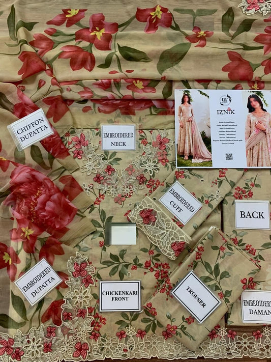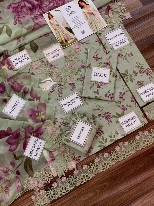 Iznik Wz 203 Most Demanding Premium Pure Laan With Chiffon Emb Duppata 2026