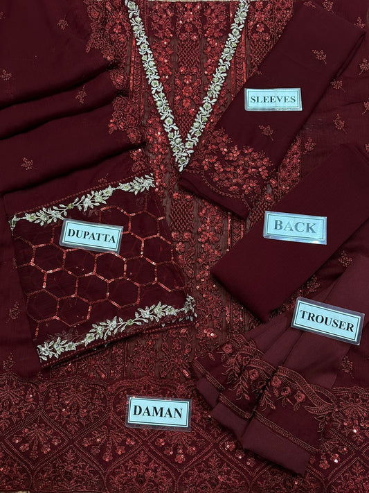 Suffuse Maha Wz-101 Reddish Maroon Luxury Lawn Embroidered Eid Collection 2025