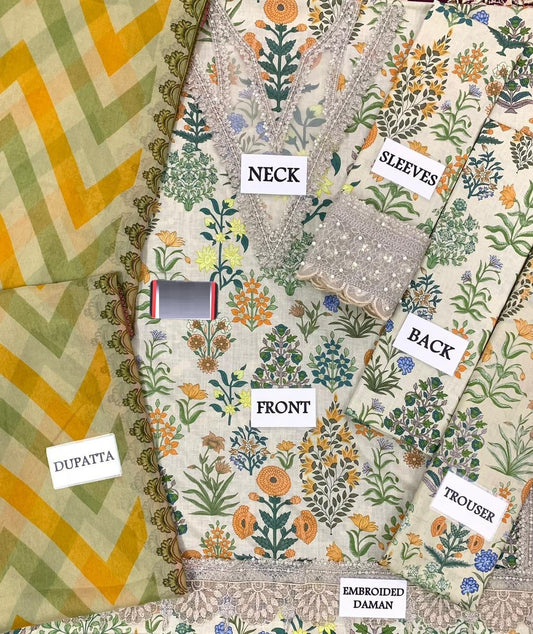 Asifa Nabeel Luxury Eid Collection Wz-04 Most Hot Code Premium Pure Lawn Dress With Organza Duppata 2025