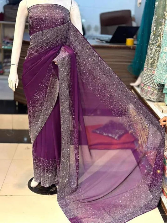 Wearza X Fatima Effendi Semi Pure Chiffon Pakistani Saree Stone Work 2025