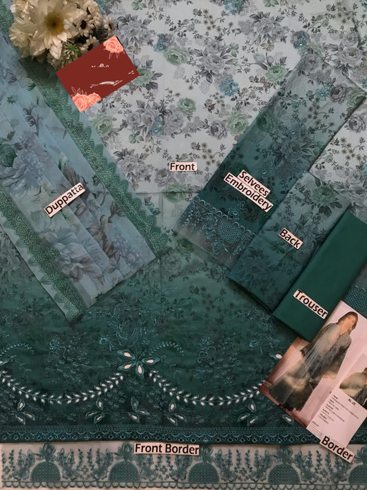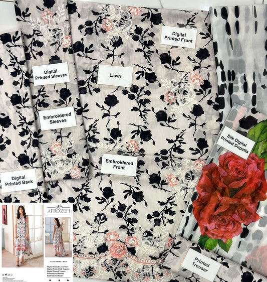 Afrozeh Wz-32 Luxury Pure Lawn Dress With Organza Emb Duppata 2024