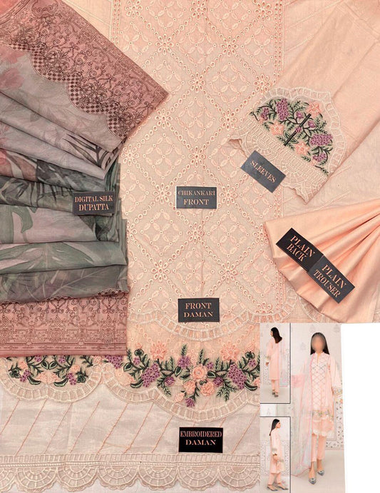 WEARZA PREMIUM PURE LAWN FULLY CHIKANKARI WITH DIGITAL SILK DUPPATA 2024
