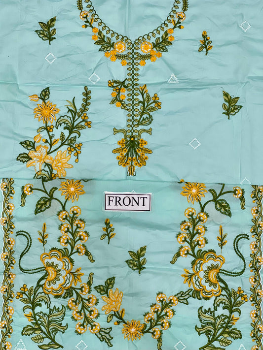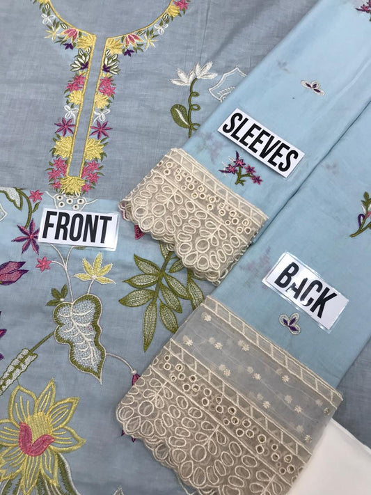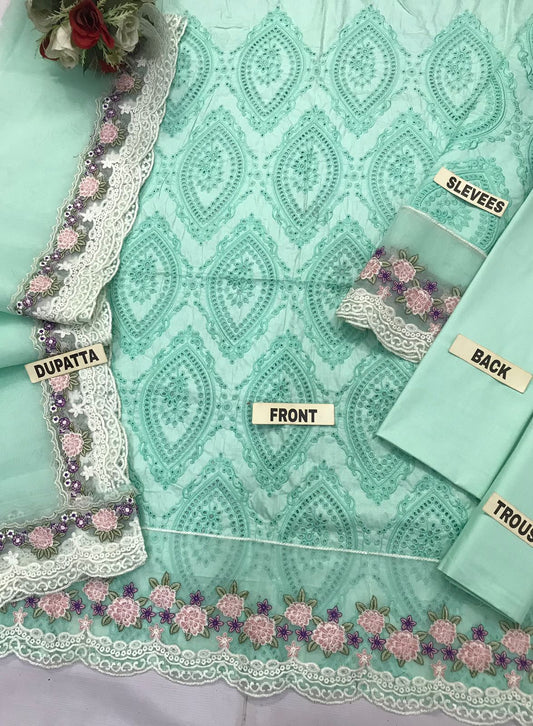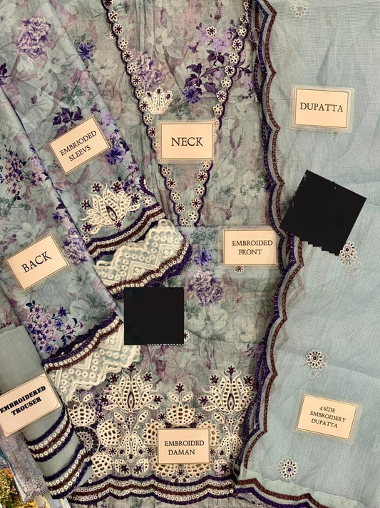 WEARZA PREMIUM PURE LAWN FULLY CHIKANKARI SUIT MOST DEMANDING DESIGN WITH ORGANZA DUPPATA 2024