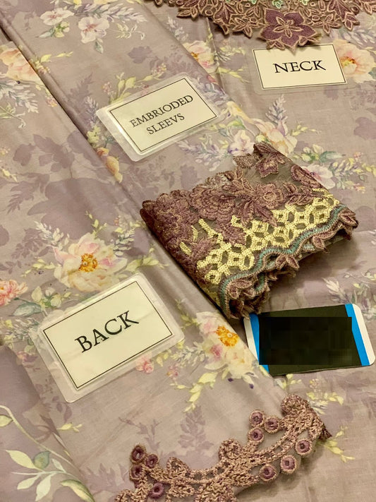 Wearza Wz=772 3 Pcs Premium Pure Lawn Dress With Khadi Net 2025