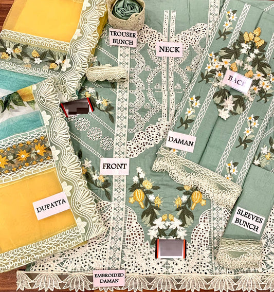 WEARZA X ADAN LIBAS PRESENT IN NEW COLOR FULLY CHIKANKARI WITH EMB KHAADI NET DUPPATA 2024