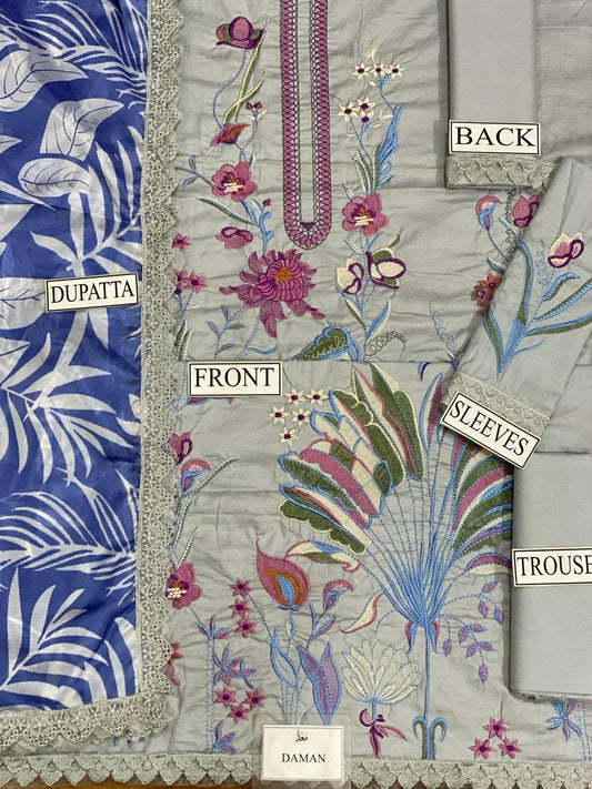 WEARZA® PREMIUM PURE EMBROIDERED LAWN WITH CHIFFON DUPPATA 2024