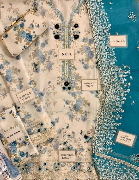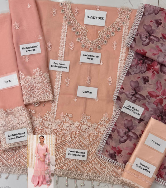 Maria b Premium Pure Chiffon Dress 3D Work Party Wear Pakistani Dress 2024