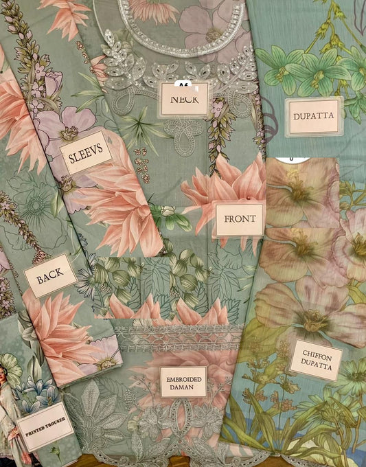 Maria B Fail Cambric Collection Pure Lawn With Chiffon Duppata 3Pc Dress 2024