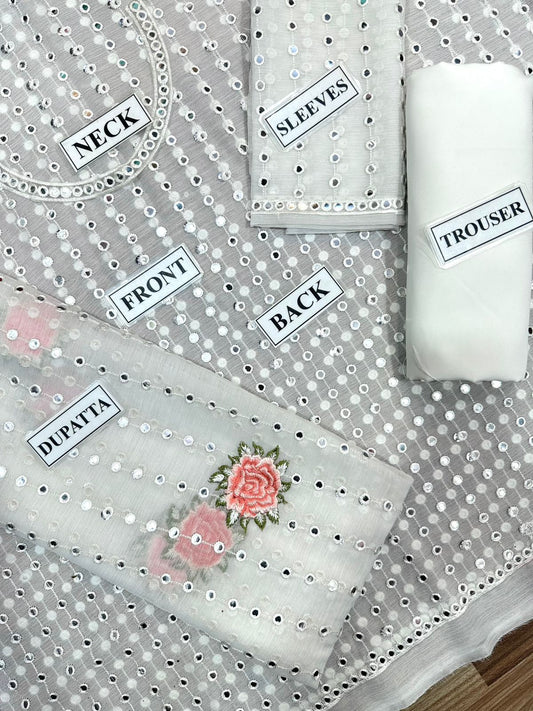 Wearza Pure Chiffon Emb Dress With 9MM Mirror Work Beautiful Dress 2024
