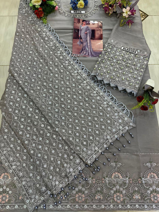 WEARZA® HEAVY EMBROIDERED (100% SEMI PURE CHIFFON) SUIT 2023