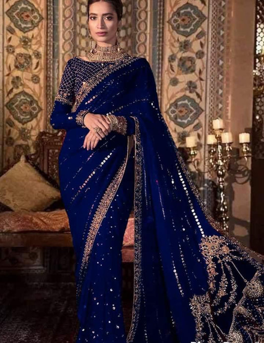 WEARZA® AZURE HEAVY EMBROIDERED (100% SEMI PURE CHIFFON)