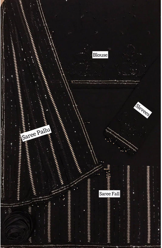 MOST BEAUTIFULL BLACK SAREE (100% PURE CHIFFON) WITH CUT WORK