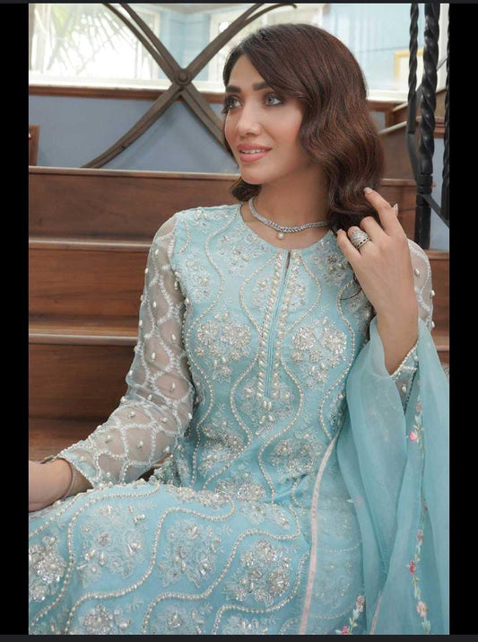 MARYAM N MARIA 100% SOFT NET HEAVY EMBROIDERED STONE WORK FROCK WEDDING 2024