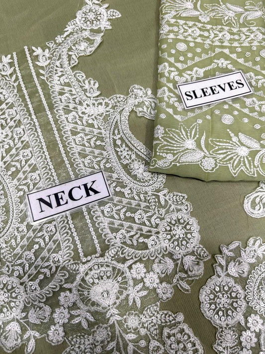 Asim Jofa Mehndi Color Dress Semi Pure Chiffon Pakistani Dress 2025