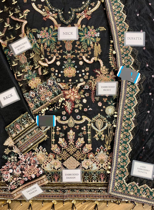 MARIA B X WEARZA MOST DEMANDING ARTICLE BLACK BEAUTY PURE ORGANZA 3D WORK WITH SOFT NET DUPPATA 2024