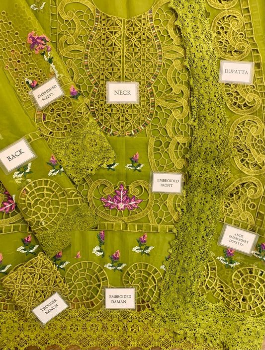 Aneela's Wz 203 Most Beautiful Premium Pure Organza Embroidered Chikankari Dress 2025