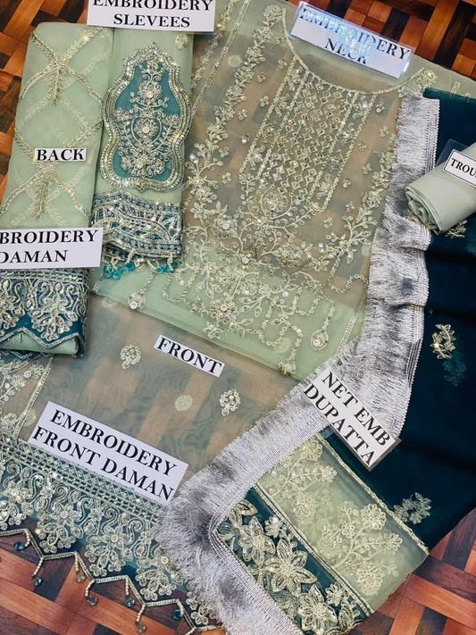 MARYAM N MARIA 100% SOFT NET HEAVY EMBROIDERED STONE WORK FROCK WEDDING 2024
