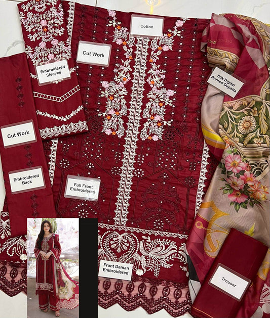 Baroque X Wearza Heavy Embroidered Front With Soft Silk Digital Printed Dupatta 2024