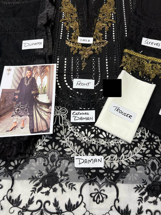 MARIA B X WEARZA PREMIUM PURE CHIKANKARI LAWN WTIH FULL EMBROIDERY NET DUPATTA 2024