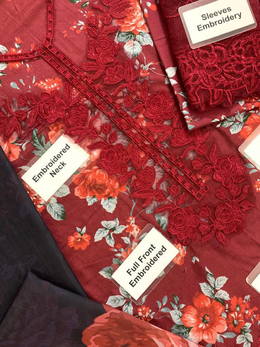 M-PRINT X WEARZA MOST HIT DESIGN PREMIUM PURE PRINTED LAWN HEAVY EMB WITH PRINTED CHIFFON DUPATTA 2024