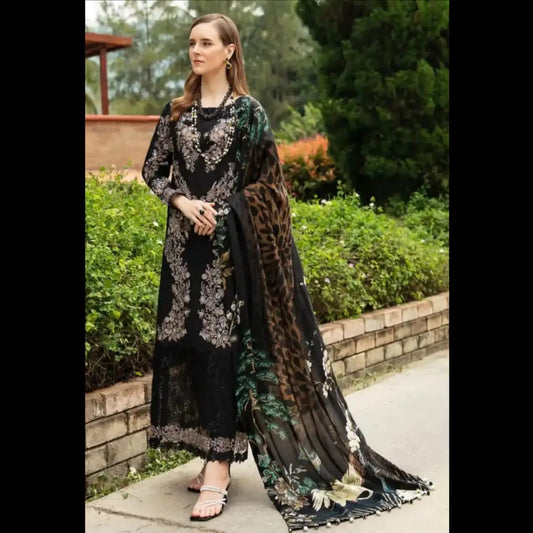 WEARZA MOST DEMANDED ARTICLE BLACKISH BEAUTY PREMIUM PURE CHIKANKARI LAWN WITH DIGITAL SILK DUPPATA 2024