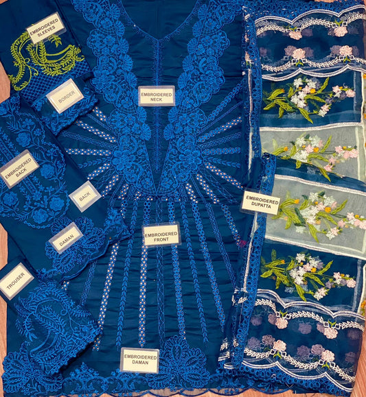 RAMSHA X WEARZA LUXURY PREMIUM PURE LAWN CHIKANKARI WITH PURE ORGANZA DUPPATA 2024