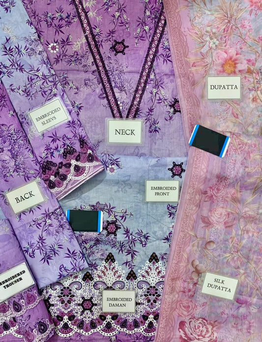 MUSHQ CHICKANKARI EMBROIDERED PREMIUM PURE LAWN WITH SILK DUPPATA 2024