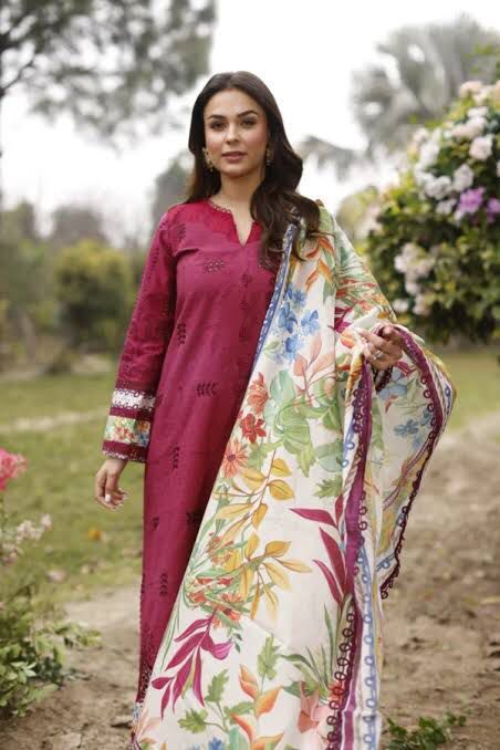Image Aimah X Wearza Digital Printed Embroidered Premium Pure Lawn With Silk Duppata 2024