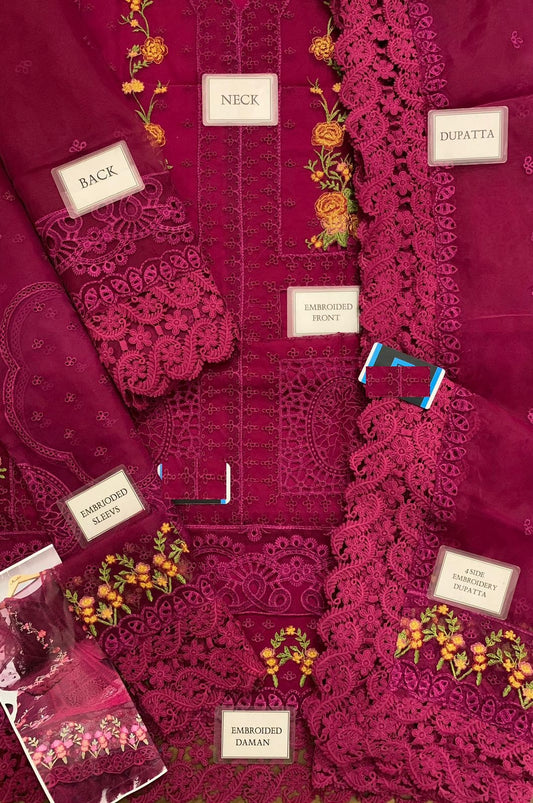 Aneela’s Red & Lilac 2 Color's Hit Code Wz-039 Premium Pure Luxury Lawn Emb With Chiffon Emb Duppata 25