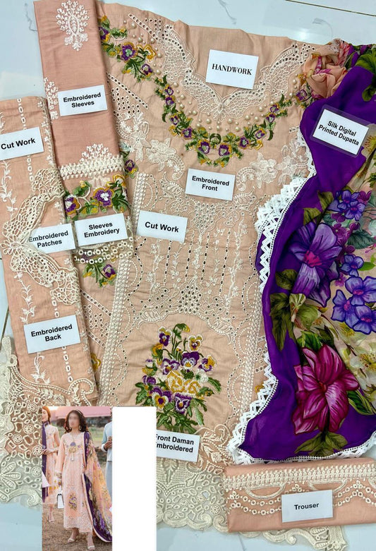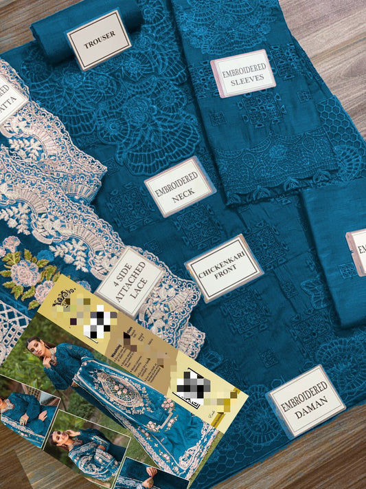 WEARZA PREMIUM PURE LAWN FULLY CHIKANKARI SUIT MOST DEMANDING DESIGN WITH ORGANZA DUPPATA 2024