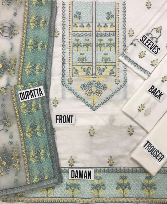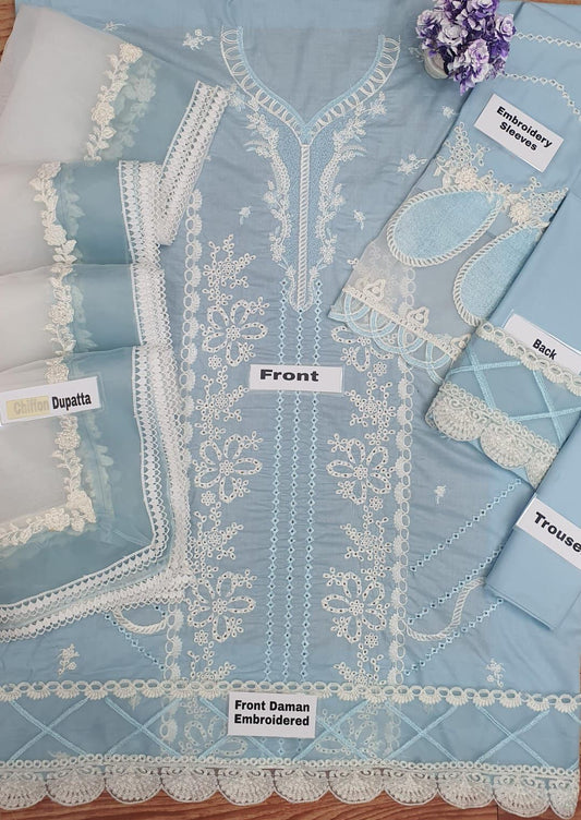WEARZA® ADAN LIBAS AD PREMIUM PURE LAWN CHIKAN KARI WITH ORGANZA DUPPATA 2024