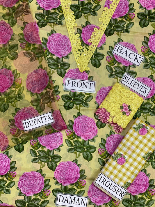 ZARQASH 100% PREMIUM COTTON SUIT WITH KHADDI NET DUPPATA 2024