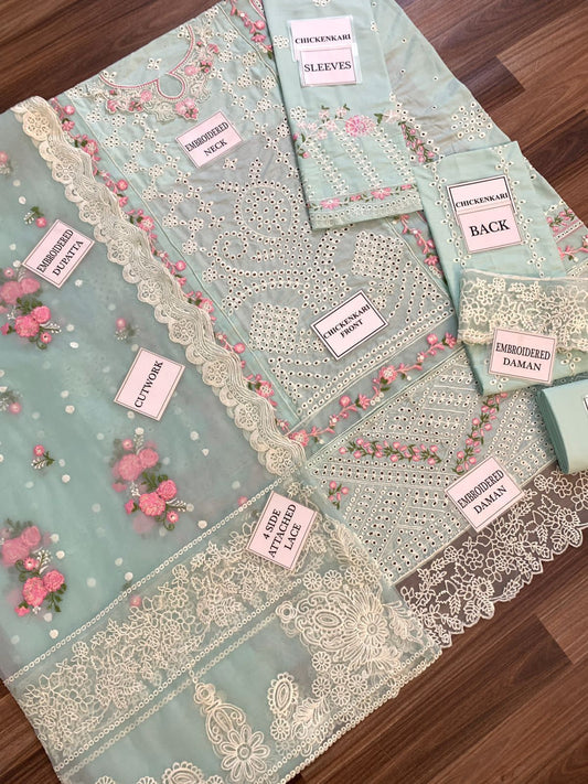 WEARZA ICONIC ARTICLE PRESENTING FULLY CHIKENKARI WITH ORGANZA DUPPATA 2024