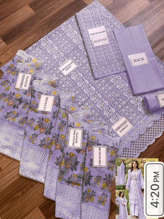 WEARZA PREMIUM PURE LAWN FULLY CHIKANKARI WITH DIGITAL SILK DUPPATA 2024