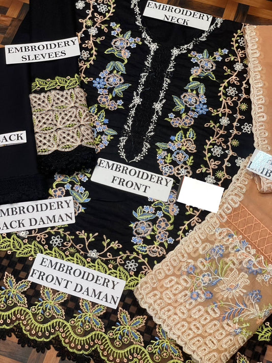 RANGRASIA BLACK BEAUTY 100% COTTON WITH PREMIUM KHADDI NET DUPPATA 2024