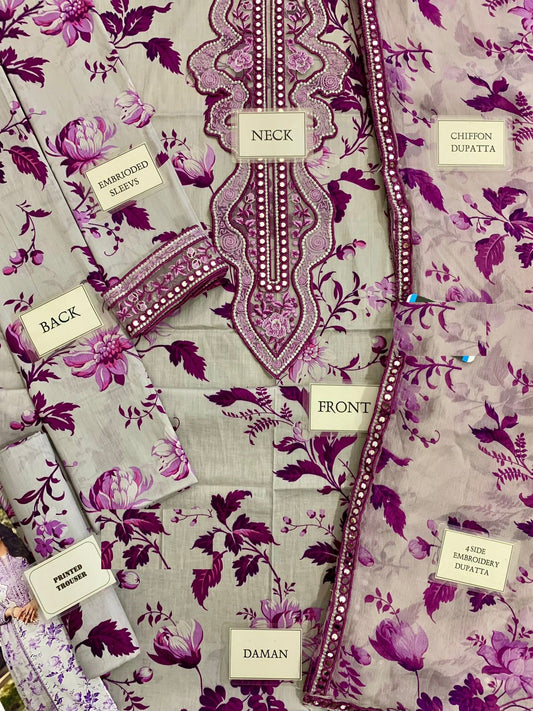 Aneela’s Hit Code Wz-039 Premium Pure Luxury Lawn Emb With Chiffon Emb Duppata 25