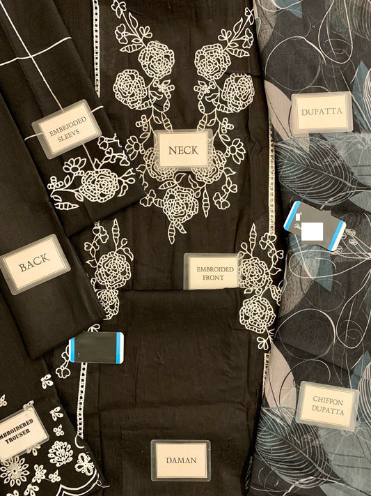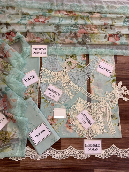 Qalamkar Wz=018 Premium Pure Lawn Emb With Minar Organza Duppata 25