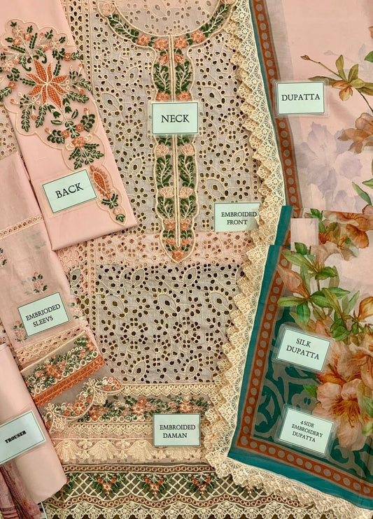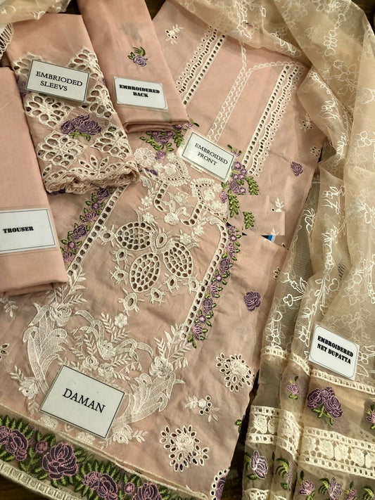 Elaf Peach New Wz-025 Luxury Lawn Cotton Emb With Khaadi Net Duppata 25