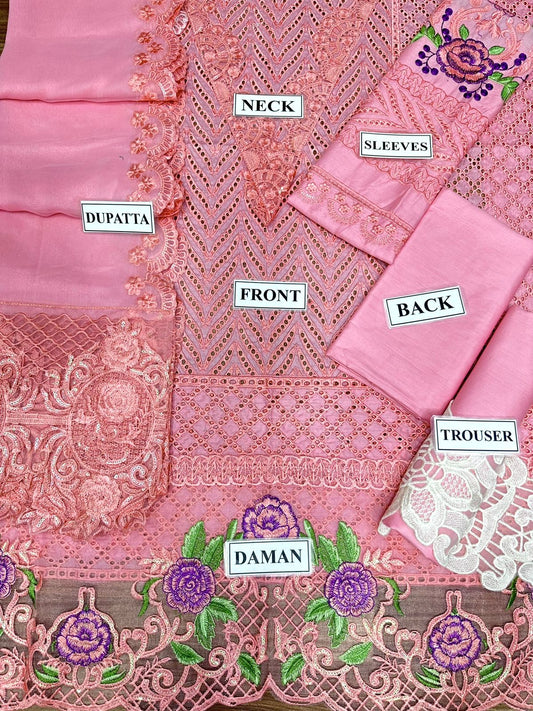 Wearza Wz-192 Premium Pure Lawn Scifflie Cutwork Dress With Organza Digital Printed Emb Duppata 2024