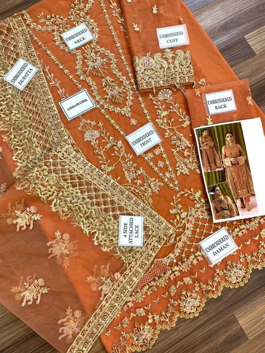 Maria b (Handmade) Luxury Wedding Suit With 3d Flower Work (Soft Net With Silk)