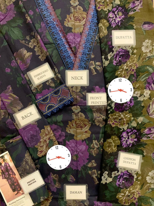 Maria b M Print Wz=774 3 Pcs Premium Pure Lawn With Chiffon Dupatta 2025