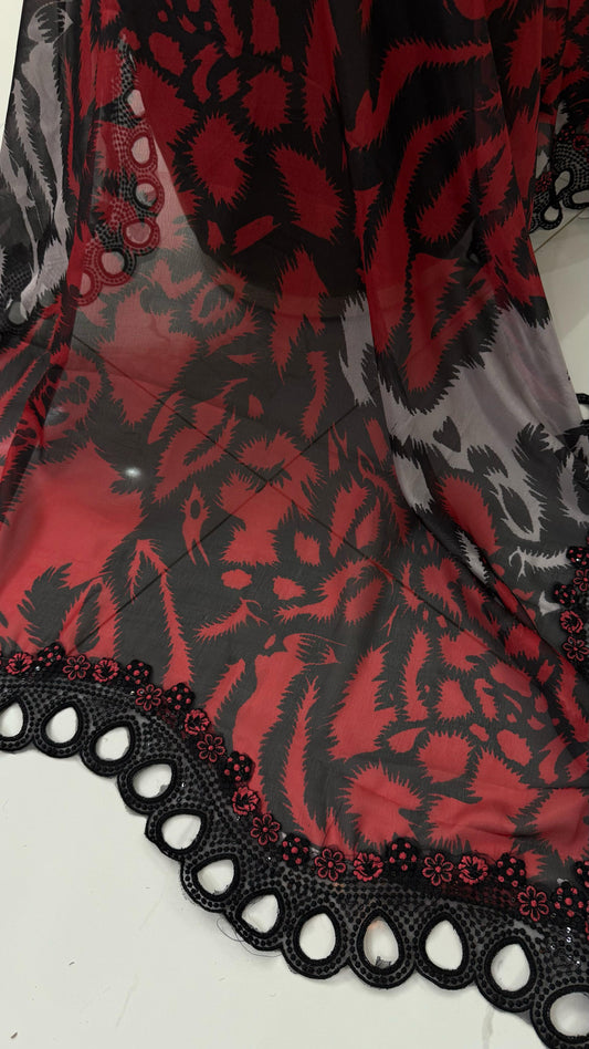 Ramsha Red & Black Wz-503 Luxury Pure Lawn Dress Eid Ul Adha Collection 2025
