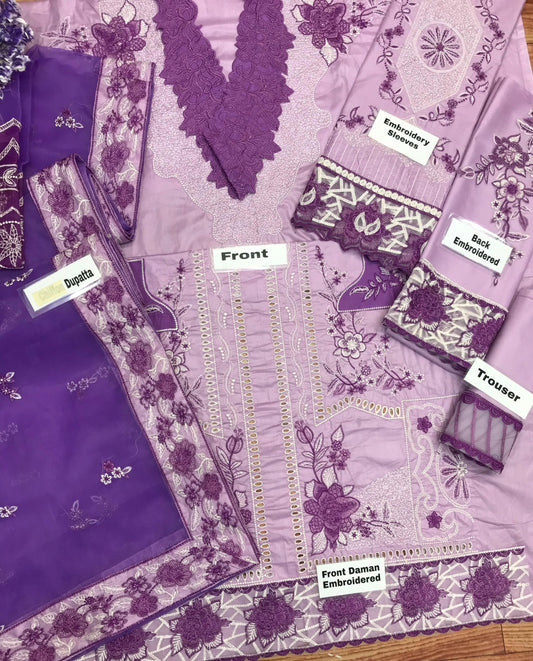 Bin Ilyas Light Purple Luxury Digital Lawn Embroidered With Silk Duppata Eid Collection 2025