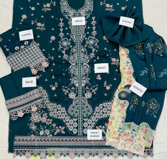 Qalamkar Wz-1185 Luxury Pure Lawn Embroidered WIth SIlk Duppata Eid Collection 2025